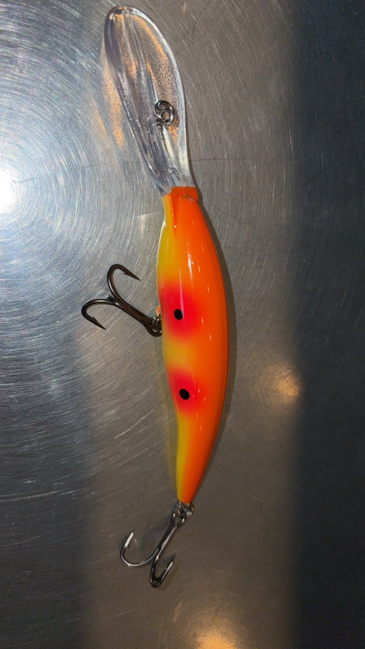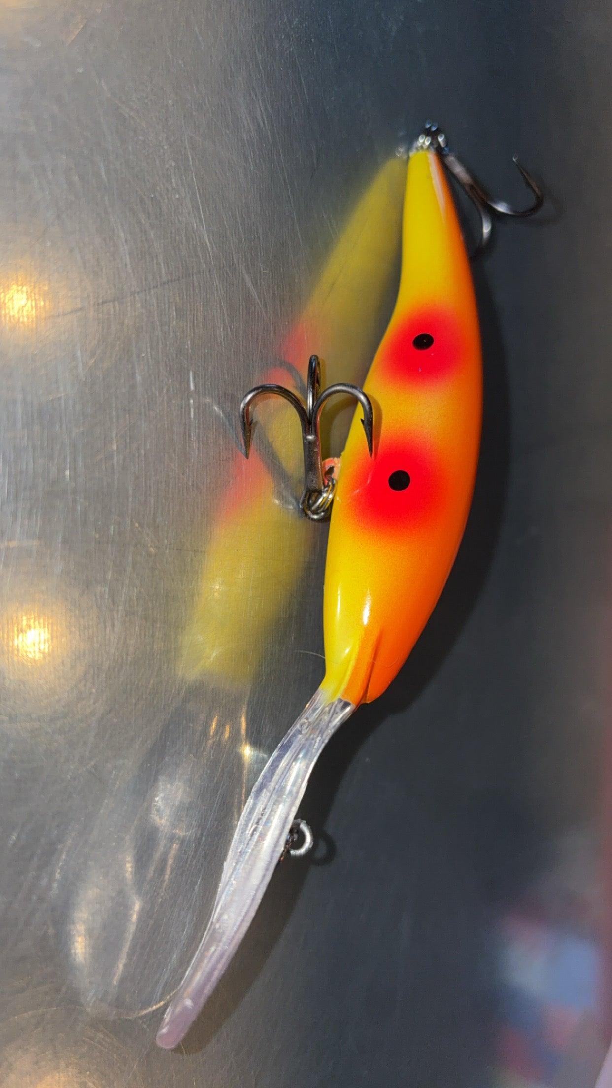 Knockoff of Rapala’s Deep Taildancer. Dives up to 15 feet. Comes with #4 heavy duty VMC trebles.